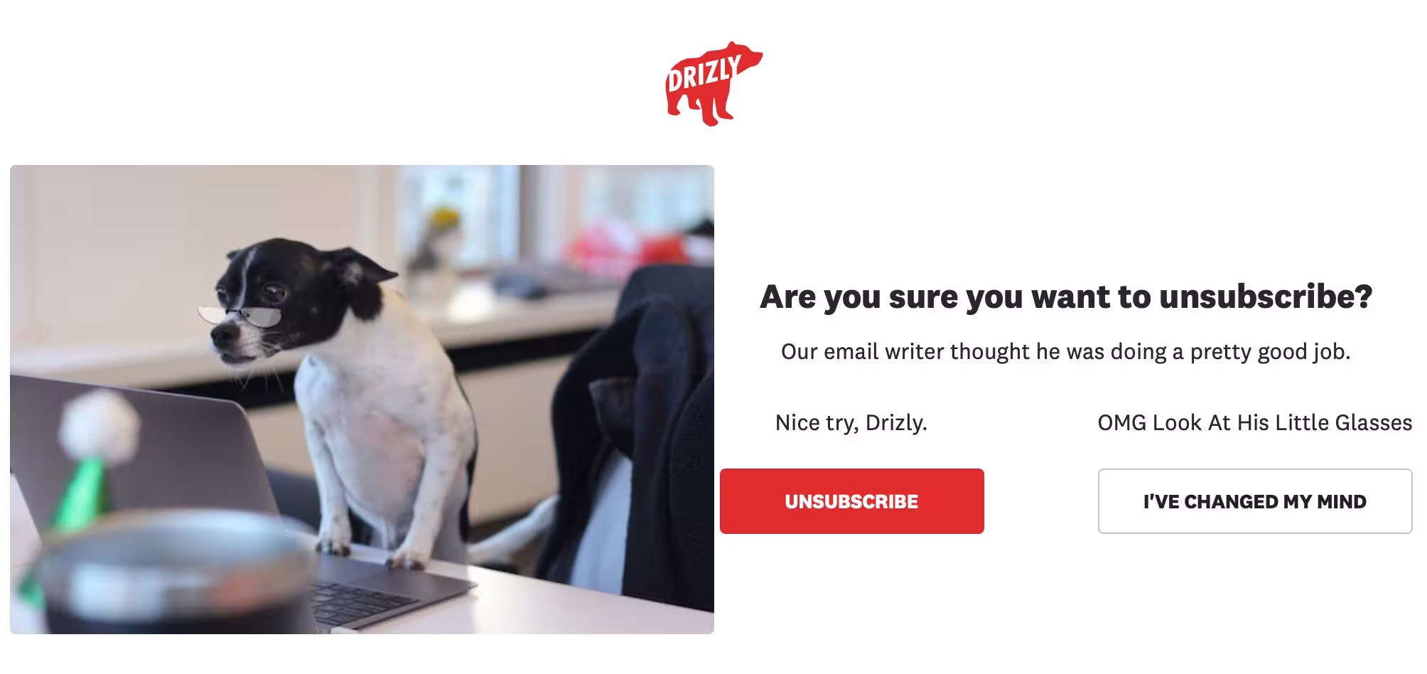 Deanna shared, “Normally, when I decide to unsubscribe, I don’t fall for cute “Are you sure?” messages. But Drizzly got me. I can’t hurt the cute dog-in-glasses’ feelings.”