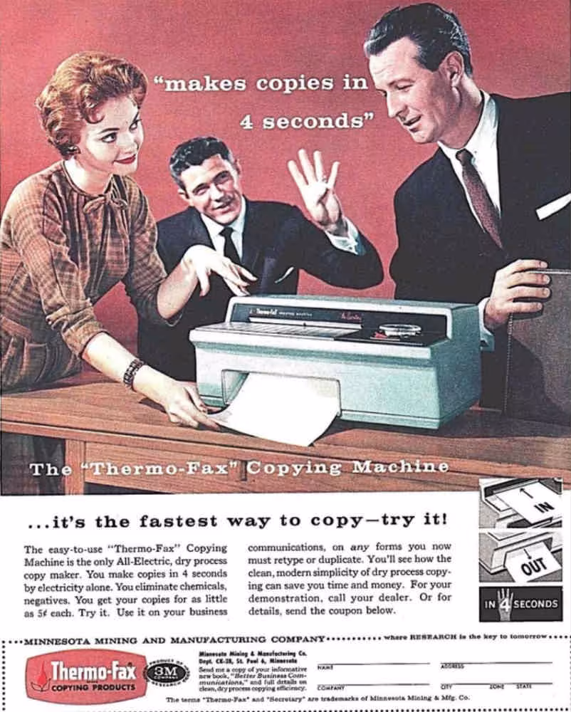 One thing we love about vintage ads is the amount of copy on them. Use that many words today, and no one would read it. Thermo-Fax dropped this one in 1958.