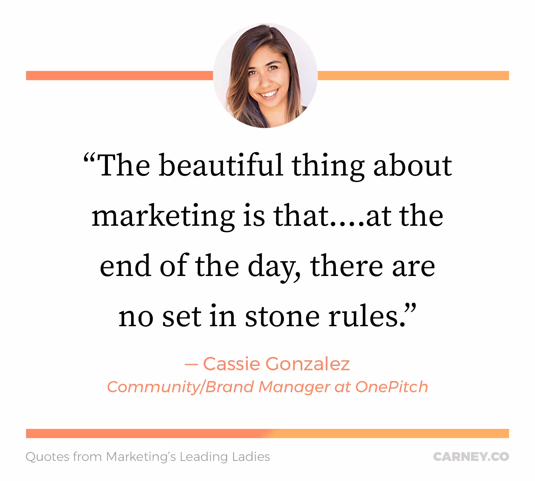 “The beautiful thing about marketing is that although there are a ton of “best practices” and guidelines, at the end of the day, there are no set in stone rules. The best tactics are those you test and find work best for you and your audience, which is what allows for so many creative ideas to develop.”