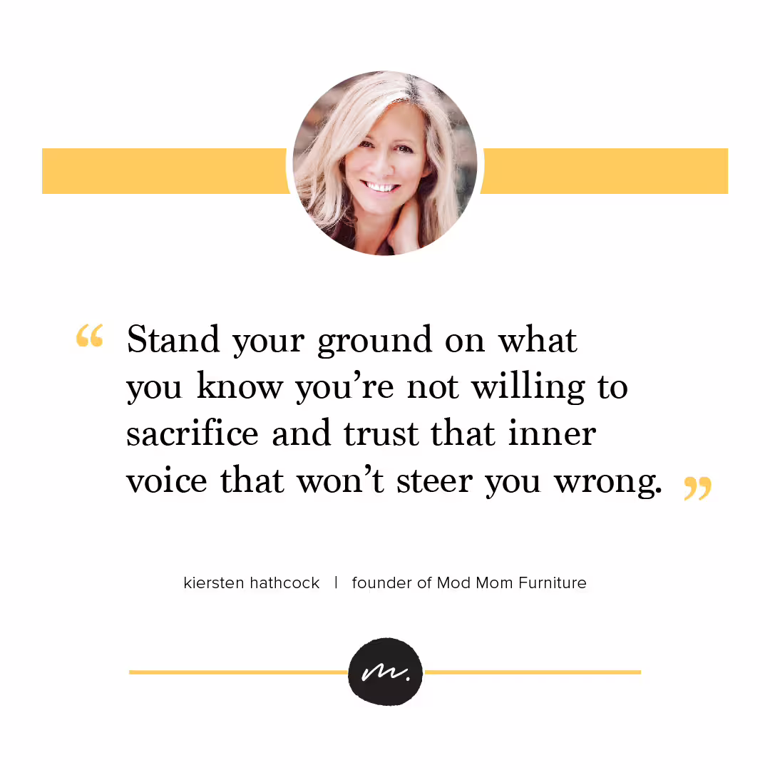 After all, Mod Mom Furniture wasn’t built on carpentry alone even though I was the one designing and building. It was my experience in marketing, sales, and graphic design that helped me build a brand from our garage. Stand your ground on what you know you’re not willing to sacrifice and trust that inner voice that won’t steer you wrong.