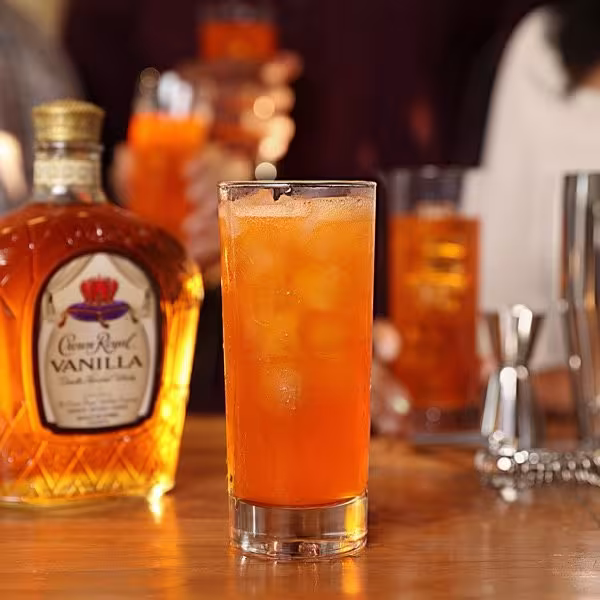 - Add Crown Royal Vanilla to an ice-filled highball glass