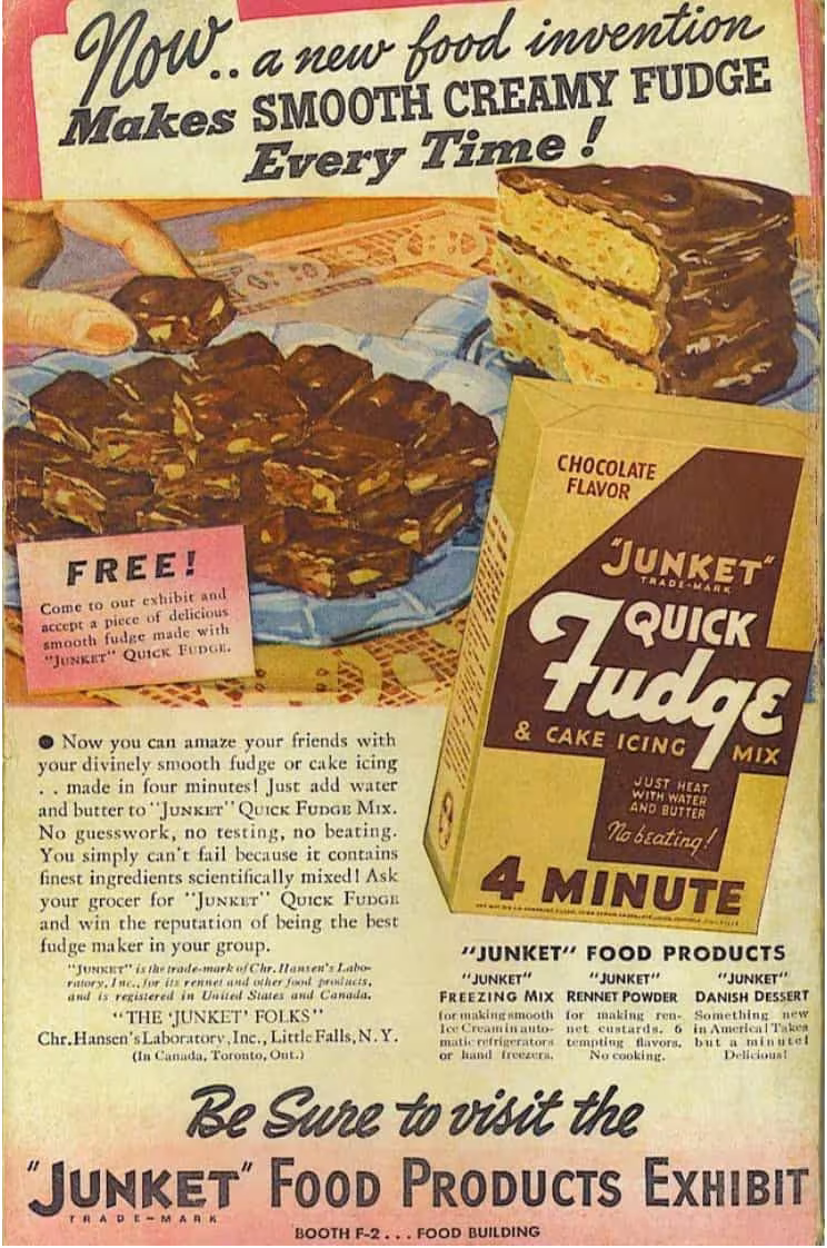 This one dropped in 1939, and while it seems innocent enough, we just can’t get over the name “Junket”. Doesn’t seem great for a food brand.