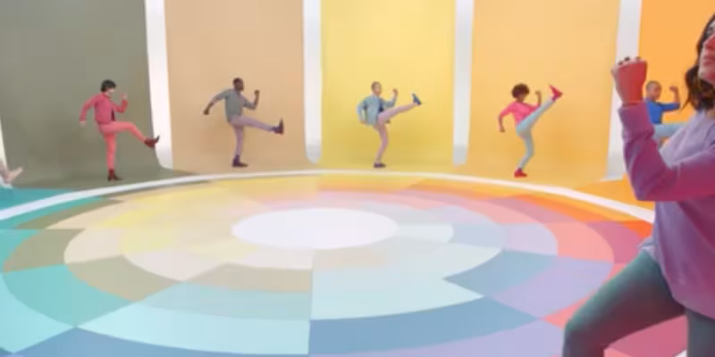 The director Kim Gehrig worked with creative agency Yard NYC and post-production house Framestore to create an inverse zoetrope with models on each section of color. A centralized camera captured them in their static poses but shot at high-speed to create the illusion of movement.