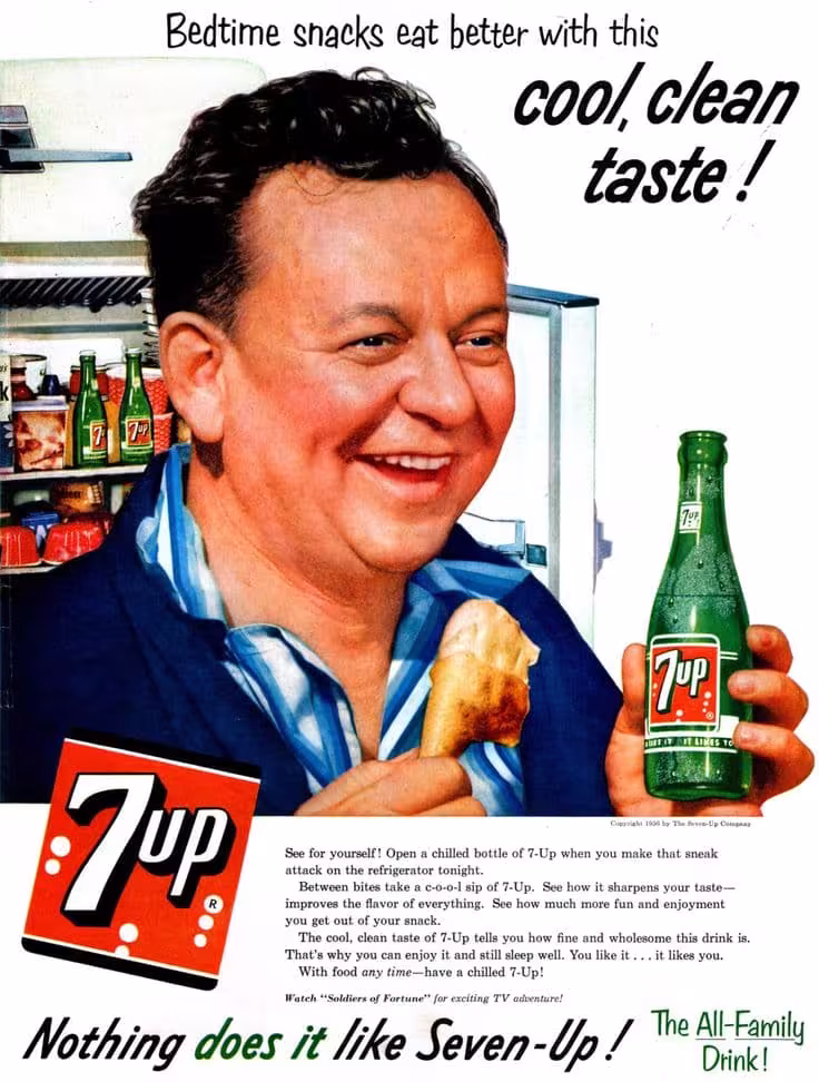 Wings and 7UP before bed? Get your Pepto ready. Ad via 1956.
