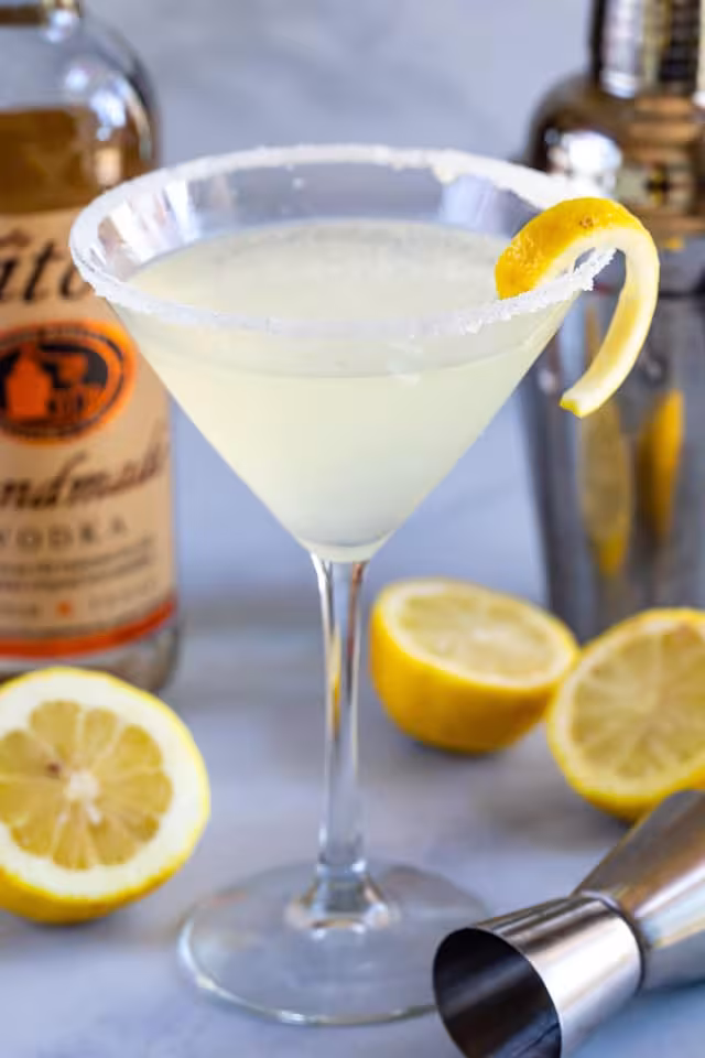 - Place a few tablespoons of sugar on a plate. Run a slice of lemon around the edge of a martini glass. Dip the glass upside down in the sugar to coat the rim.