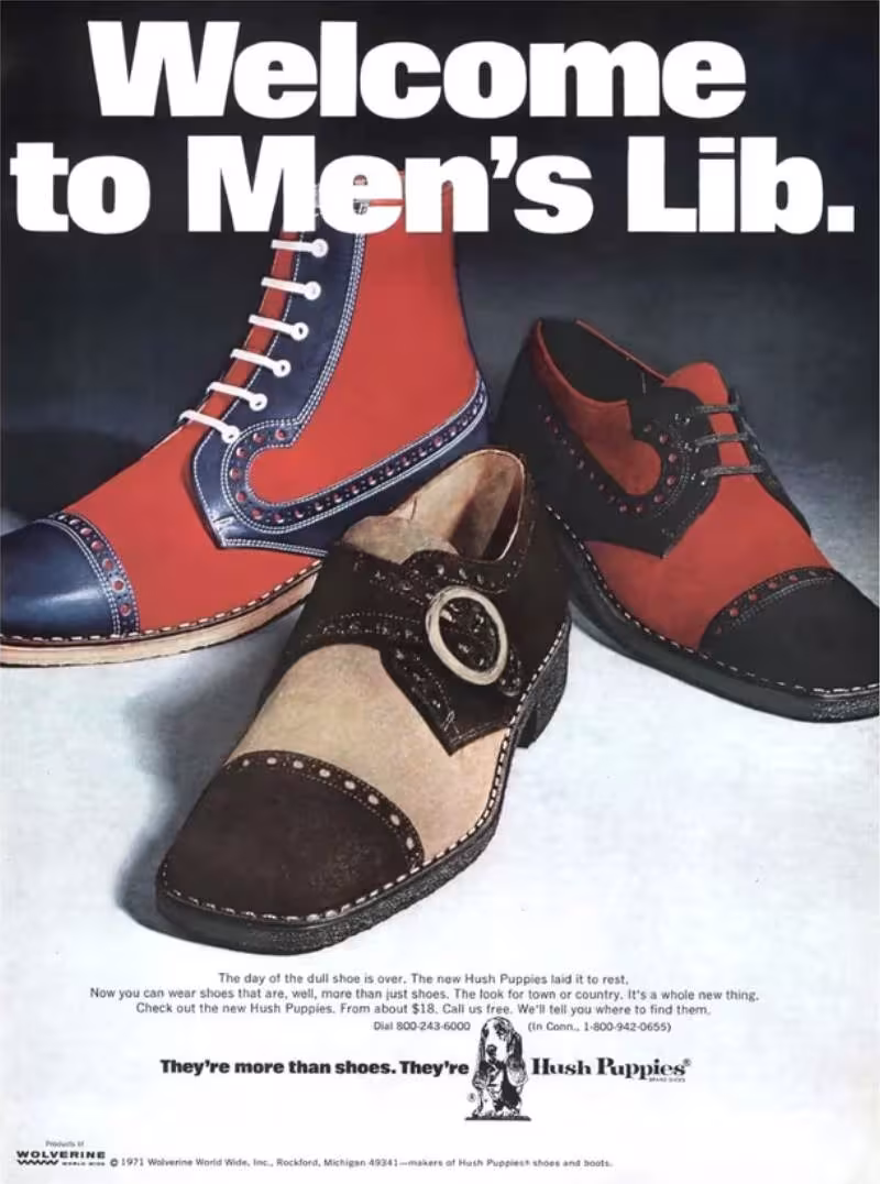 Check out the detail in these stylish shoes from Hush Puppies. This ad came into the world in 1971.