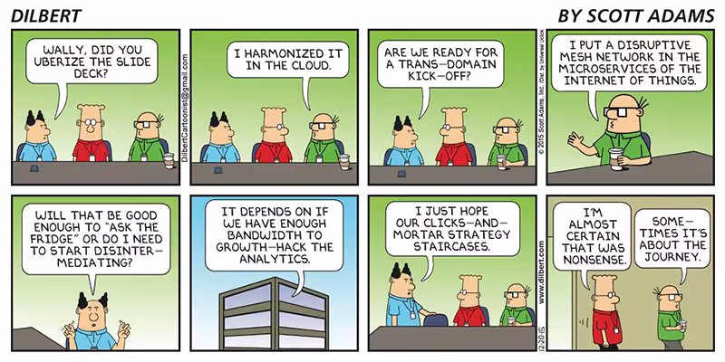 Buzzwords are alive and well in offices across the country, but they’re particularly ugh-worthy as website copy. We’d wager to say that a lot of readers roll their eyes when they read them. Let’s end the buzzword buzz and just say what we mean to say. Forget the fillers phrases and get real. We’ll circle back offline to see how it’s going. (Kiddiiiiing)