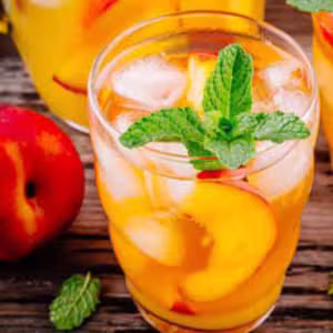 - Add 2 to 3 slices of peaches. Top of with mint leaves.