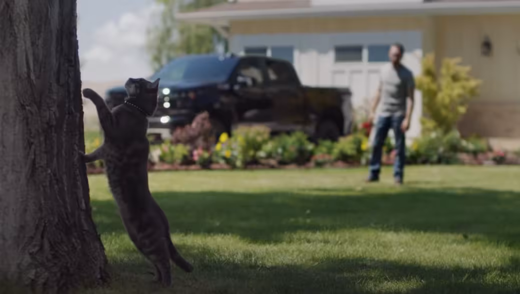 This Chevy Silverado ad is all about a man, his truck, and his best friend Walter, a cat that acts like a dog. But despite a day out playing fetch, herding cattle, and hunting ducks, this guy doesn’t see the hype about his own cat buddy. He’s too busy being blown away by his Silverado’s tailgate features.